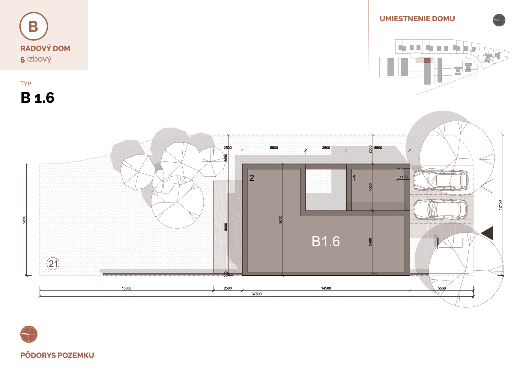 Dvojpodlažný 5-izbový rodinný dom typu B s veľkorysou dispozíciou a vnútorným átriom, situovaný v hniezdovej zástavbe v pokojnej slepej ulici, ktorá prináša vyššiu mieru súkromia. Atraktívnym benefitom tohto domu je flexibilné riešenie prízemia, ktoré umožňuje namiesto hosťovskej miestnosti vytvoriť samostatnú kanceláriu so vstupom priamo z ulice, ideálnu na podnikanie aj moderný home office. Denná časť prepája kuchyňu s obývačkou a cez veľkoformátové okná aj interiér s exteriérom, takže aj pri pobyte vnútri máte pocit blízkosti prírody. RD je navrhnutý s dôrazom na kvalitné materiály a precízne spracovanie.