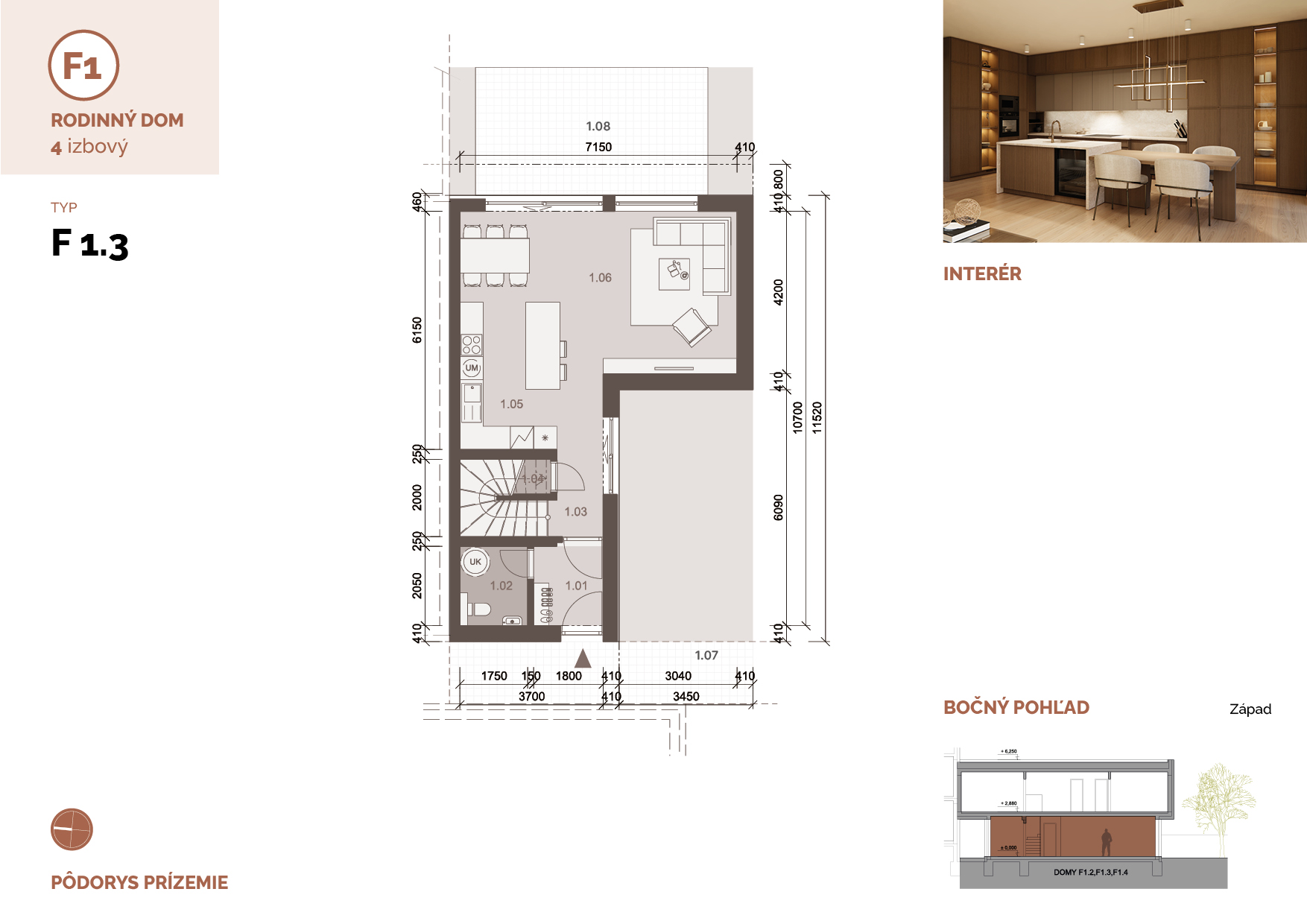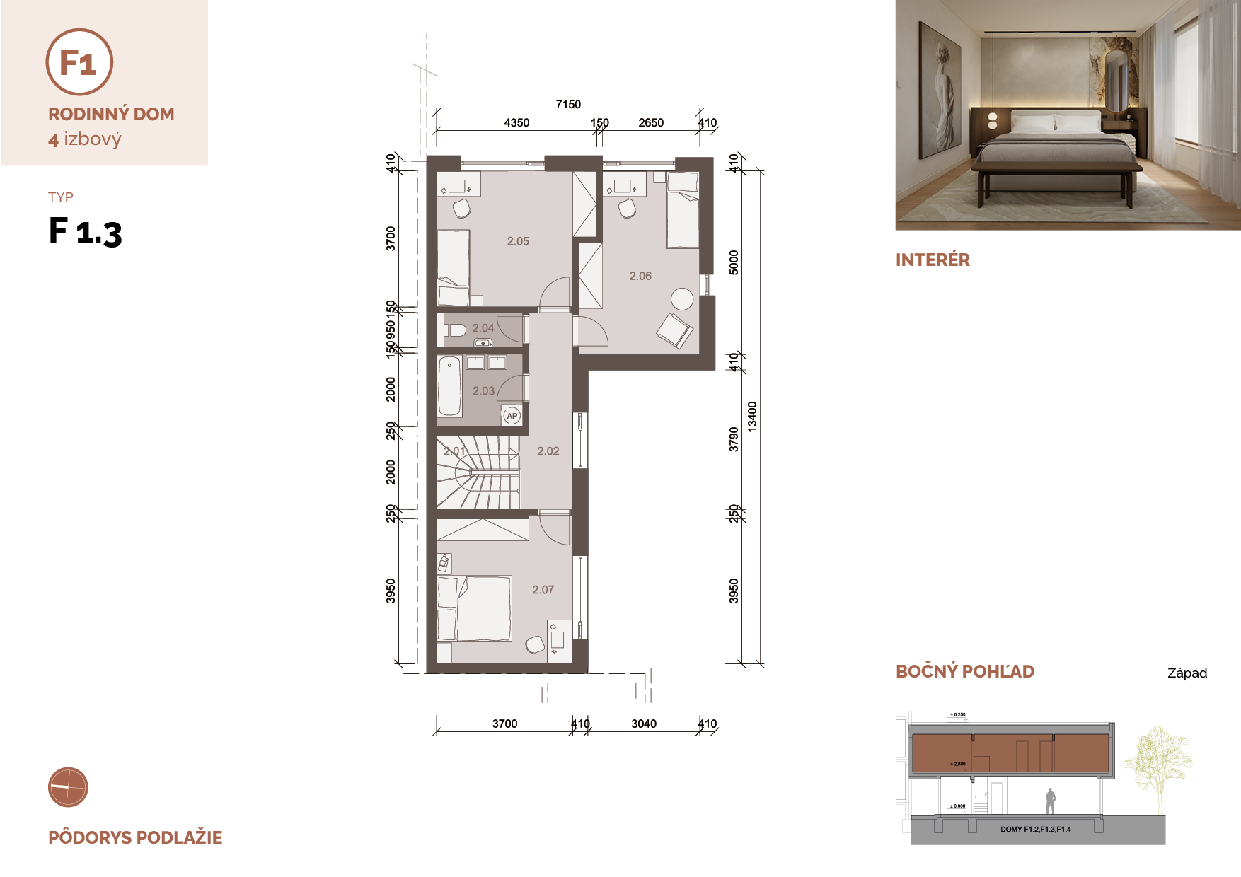 Dvojpodlažný 4-izbový rodinný dvojdom typu F s vlastným pozemkom, exteriérovou terasou a vyhradeným parkovacím státím na ulici prináša pohodlné bývanie s dôrazom na nadčasový dizajn, praktickú dispozíciu a kontakt s prírodou. Spolu s priľahlými domami typu E tvorí ucelený architektonický súbor, ktorý dodáva ulici charakter a identitu.